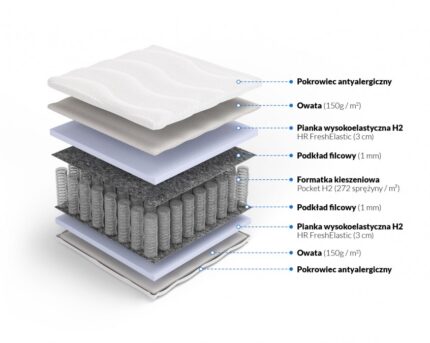 Materac Penelopa HR to sprężynowy materac kieszeniowy z pianką HR FreshElastic 3 cm z każdej strony — średnio-twardy, elastyczny i