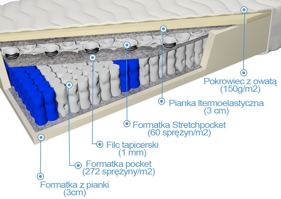 272 szt./m² (Pocket 7 stref) + 60 szt./m² (Stretch Pocket)