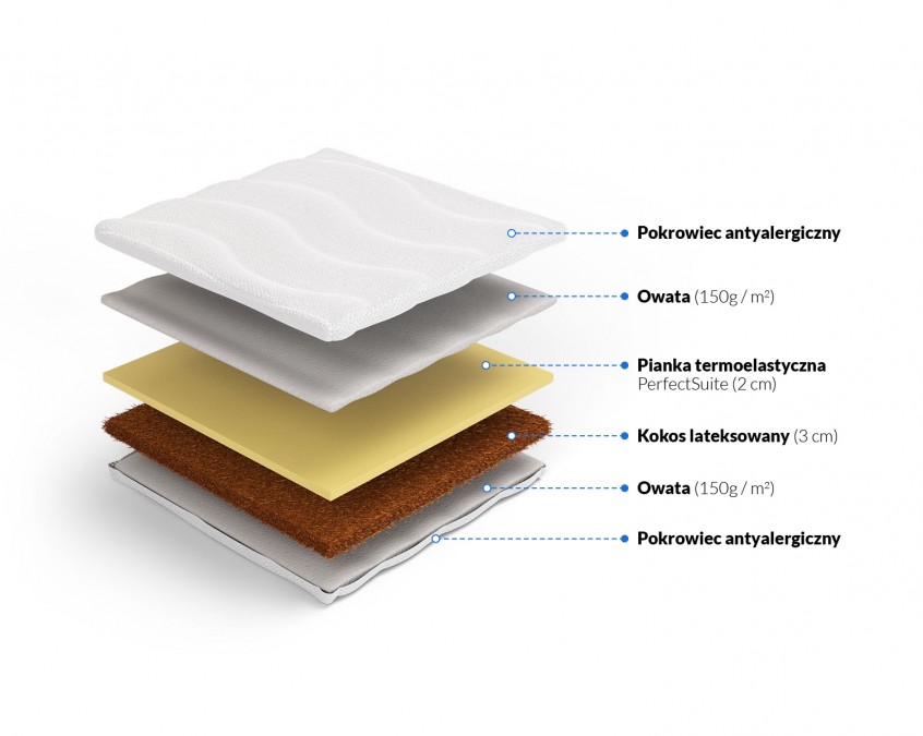 Kokos lateksowany 3 cm + pianka memory 2 cm