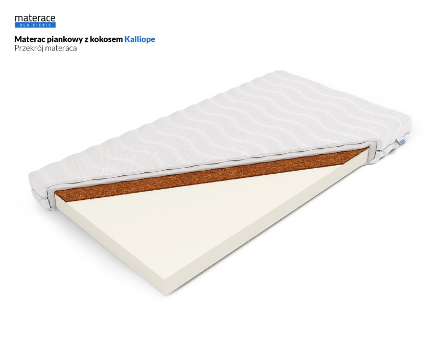 Materac Kalliope – Materac piankowy z warstwą kokosu lateksowanego. Dwie twardości: średnio-twarda H2 (pianka) lub twarda H3 (kokos). Trwały, przewiewny, antyalergiczny.