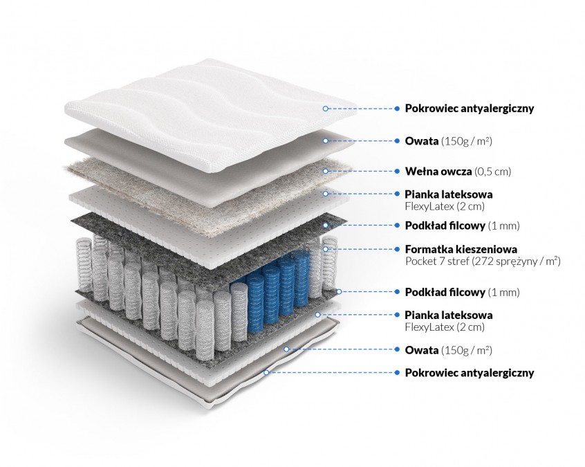 Pocket 272 spr. + FlexyLateks (obie strony) + owcza wełna