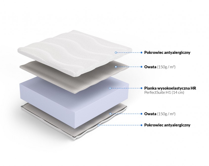 Wszystkie komponenty antyalergiczne, doskonała wentylacja pianki HR zapobiega gromadzeniu wilgoci i rozwojowi roztoczy.