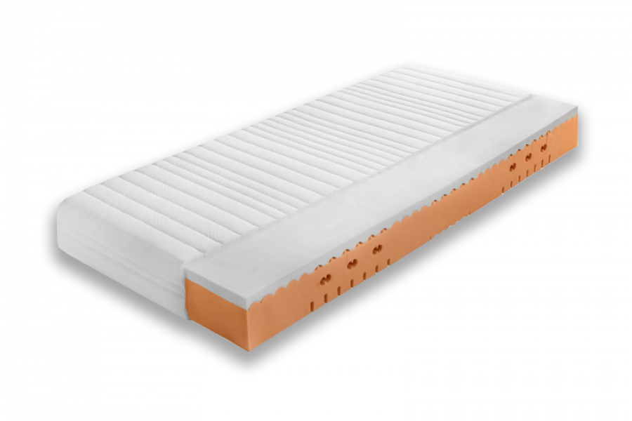 Materac Lucca H2 to budżetowa propozycja premium z pianką memory — perforowana warstwa HR 12 cm z 7 strefami twardości