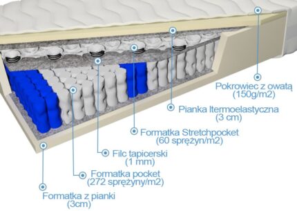 Materac Herakles to premium Multipocket z 508 sprężynami na m² i pianką FlexyLateks 4 cm symetrycznie z obu stron. 20